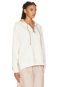 Lace-up cotton-blend jersey hoodie Cream