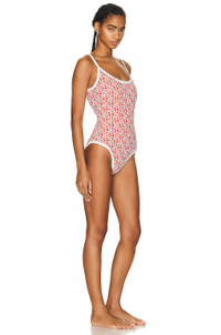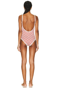 Logo Print Scoop Neck One Piece Swimsuit