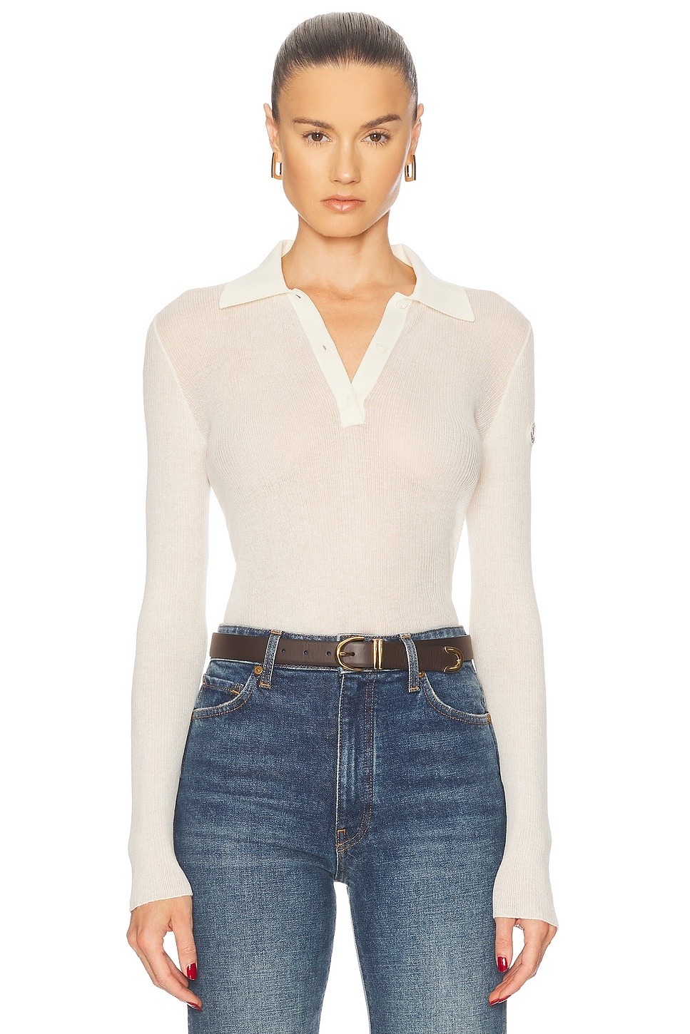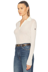 Details - 82% cotton, 18% polyamide - Made in Romania - Dry clean only - Pull-on styling - Logo detail at sleeve - Sheer knit fabric - Garment is intentionally sheer, undergarments will show through - Our Style No. MONC-WS50 - Manufacturer Style No. 9A00005-M1732