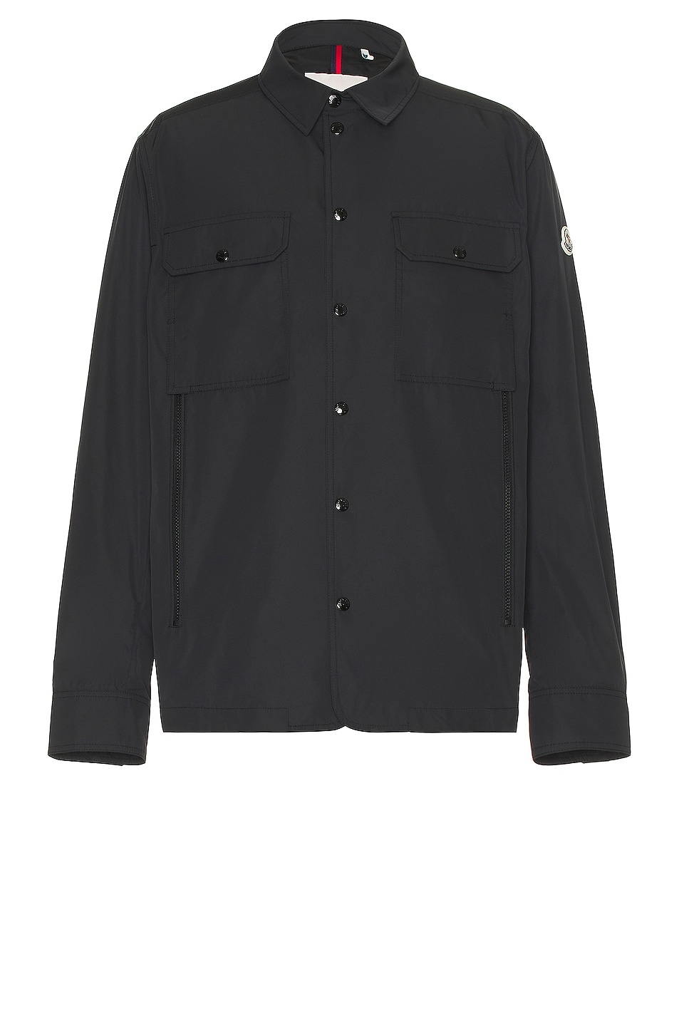 Details - Self: 100% polyester - Lining: 100% polyamide - Made in Romania - Hand wash - Two-way front zip closure and snap button placket - Buttoned cuffs - Chest flap pockets and side zip pockets - Felt Moncler logo at sleeve - Ripstop fabric with back vents - Our Style No. MONC-MO155 - Manufacturer Style No. 1A00096 - 54A91