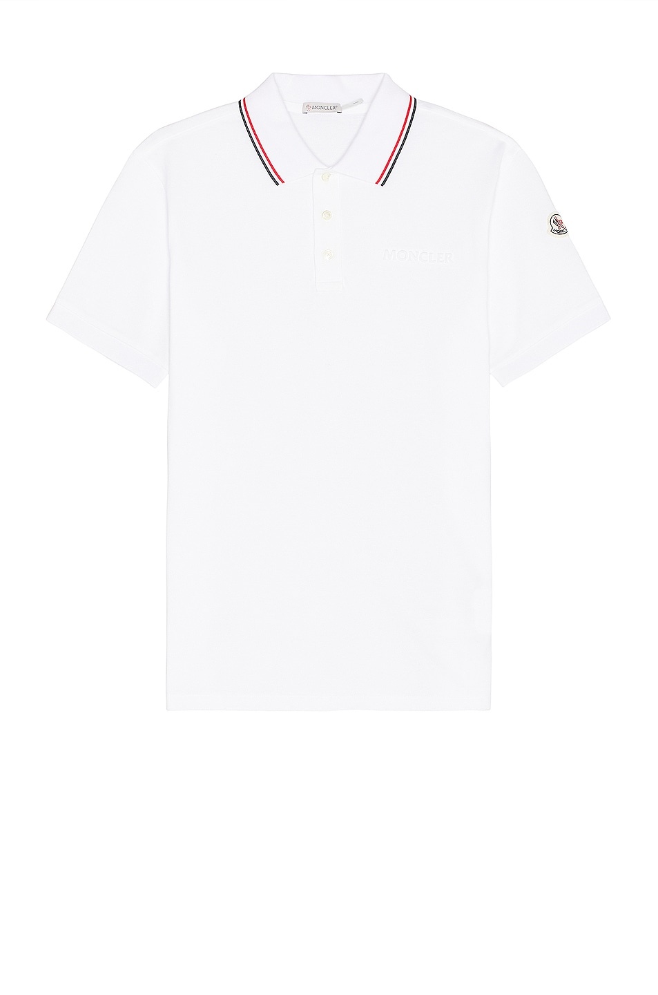 Details - 100% cotton - Made in Turkey - Machine wash - Partial front button closure - Tonal raised Moncler logo at left chest - Ribbed collar with contrast striping - Pique fabric with Moncler logo patch at left sleeve - Our Style No. MONC-MS80 - Manufacturer Style No. 8A00006-84556