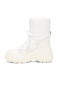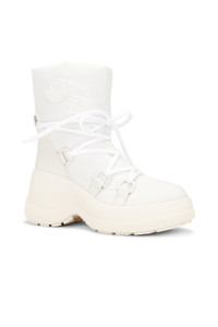Details - Leather and ripstop fabric upper with rubber sole - Made in Italy - Lace-up front - Leather lining - Tonal Moncler logo patch at ankle - Approx 75mm/ 3 inch heel - Approx 25mm/ 1 inch platform - Approx 165mm/ 6.5 inch shaft - Shaft measures approx 30 cm in circumference - Our Style No. MONC-WZ88 - Manufacturer Style No. 4F00140-M4386