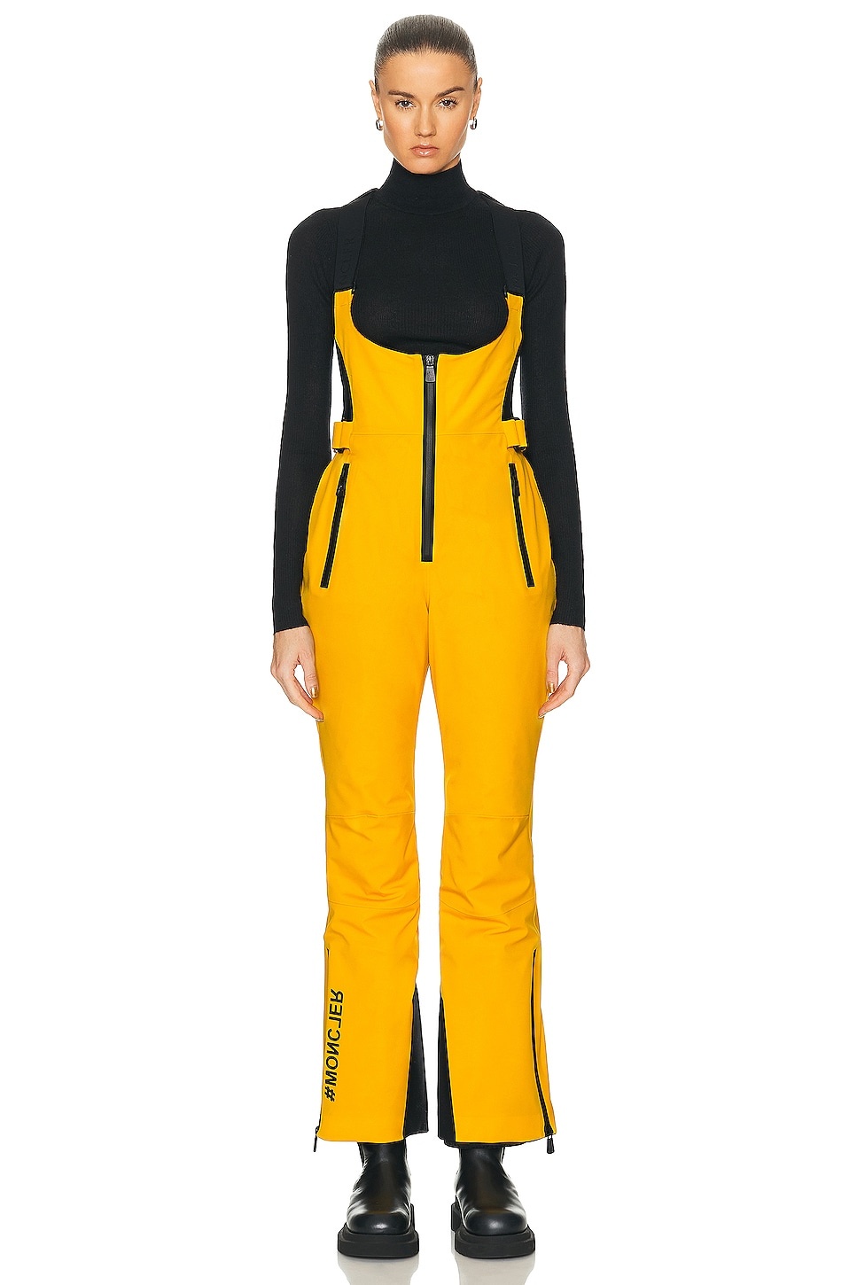 Details - Self: 87% polyamide, 13% elastane - Lining 1: 95% polyamide, 5% elastane - Lining 2 & Contrast Fabric 1: 100% polyamide - Padding: 100% polyester - Contrast Fabric 2: 52% polyester, 32% polyamide, 16% elastane - Made in Moldova - Machine wash - Front zipper closure and adjustable Moncler logo shoulder straps - 4-pocket styling - Fleece-lined jersey - Snow catcher hem - Water resistant jersey and ripstop - Our Style No. MOBF-WC4 - Manufacturer Style No. I20982G0000353066
