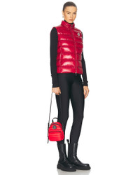 Details - Water-repellent quilted nylon exterior and lining with leather trim - Made in Bulgaria - Top zipper closure - One main compartment - Interior leather card slot - Front zipper pocket - Silver-tone metal and leather front patch - Measures approx 15 cm W x 18 cm H x 11 cm D - Top handle with a 5 cm drop - Our Style No. MONC-WY26 - Manufacturer Style No. 5L00024-M2176