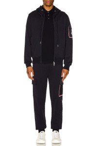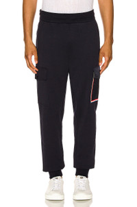 Details - Self: 100% cotton - Contrast Fabric: 100% polyamide - Made in Turkey - Machine wash - Elastic waistband with interior drawstring - Side slant pockets, cargo pockets and back welt pocket - Back Moncler logo - Our Style No. MONC-MP16 - Manufacturer Style No. 8H00013 - 809KR
