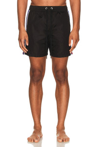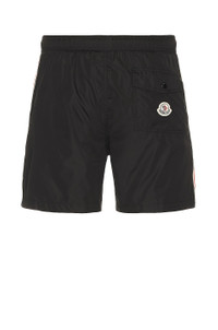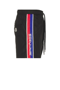 Details - 100% polyamide - Made in Tunisia - Machine wash - Attached mesh lining - Elastic waist with drawstring closure - 3-pocket styling with Moncler logo patch - Ripstop fabric with contrast stripe detail at side - Our Style No. MONC-MX16 - Manufacturer Style No. 2C00011 - 53326