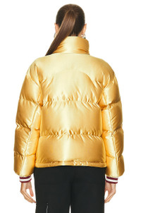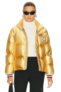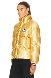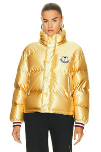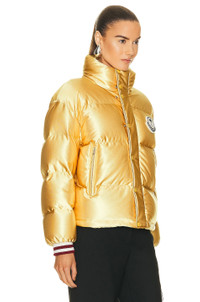 Details - Moncler Genius x Palm Angels collaboration - Self: 100% polyester - Lining: 100% polyamide - Fill: 90% goose down 10% feathers - Made in Romania - Hand wash - Front zipper and snap button closure - Side slant zipper pockets - Stand up collar - Moncler logo patch at breast - Heavyweight padded metallic ripstop fabric - Our Style No. MGEF-WO24 - Manufacturer Style No. H209L1A00001M2342