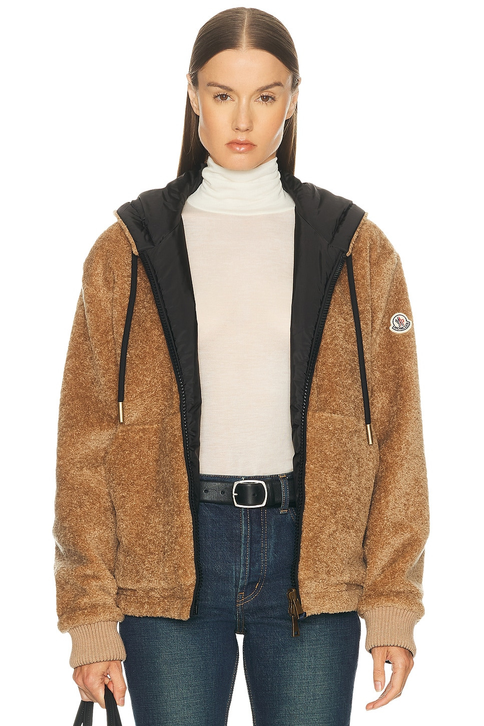 Details - Self: 60% acrylic, 40% cotton - Lining 1 & Padding: 100% polyamide - Lining 2: 100% polyester - Dry clean only - Exposed front zipper closure - Hoodie design with drawstring accent - Side slant pockets - Logo detail at left sleeve - Reversible styling - High-pile fleece and ripstop fabric - Made in Moldova - Our Style No. MONC-WK57 - Manufacturer Style No. K20938-G00016-89AOF