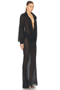 Details - Chiffon textile - Imported - Dry clean recommended - Unlined - Pull-on styling - Draped fabric and bodice and buttoned cuffs - Our Style No. MNOX-WD53 - Manufacturer Style No. Chiffon dress