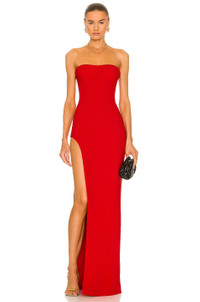 Details - 82% triacetate, 18% poly - Made in USA - Dry clean - Fully lined - Hidden back zip closure - Padded cups and boned bodice - Crepe fabric with notched hem - Our Style No. MNOX-WD16 - Manufacturer Style No. PF2021DR07