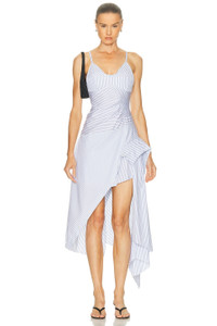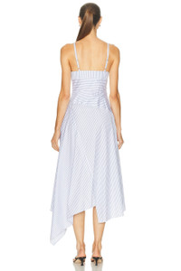 Details - 100% cotton - Dry clean only - Partially lined - Hidden side zipper closure - Adjustable shoulder straps - Poplin fabric with asymmetrical hem - Made in China - Our Style No. MNSF-WD95 - Manufacturer Style No. MP250206SCN