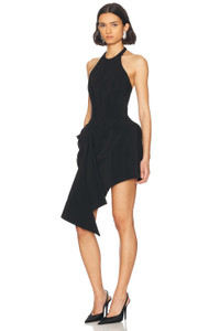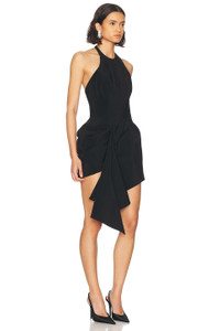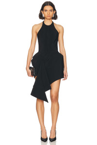 Details - Self: 76% viscose, 24% virgin wool - Lining: 100% cupro - Made in Portugal - Dry clean only - Fully lined - Halterneck S-hook closure - Hidden back zipper closure - Boned at bodice and padded at hips - Asymmetrical draped fabric - Twill fabric - Our Style No. MUGL-WD165 - Manufacturer Style No. 25P1RO1710196