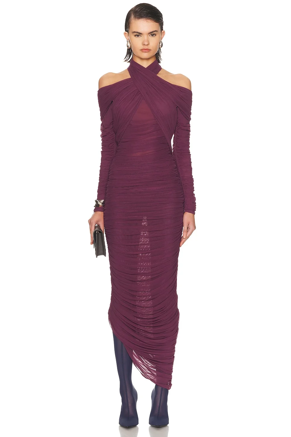 Details - Self: 94% recycled polyamide, 6% elastane - Lining: 57% polyester, 43% polyamide - Dry clean only - Fully lined with mesh fabric - Hidden side and back zip closure - Cut-out design at shoulders - Ruched sides - Heavyweight mesh fabric - Made in Tunisia - Our Style No. MUGL-WD186 - Manufacturer Style No. 25F3RO1790595