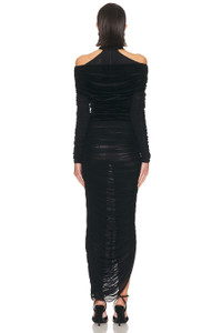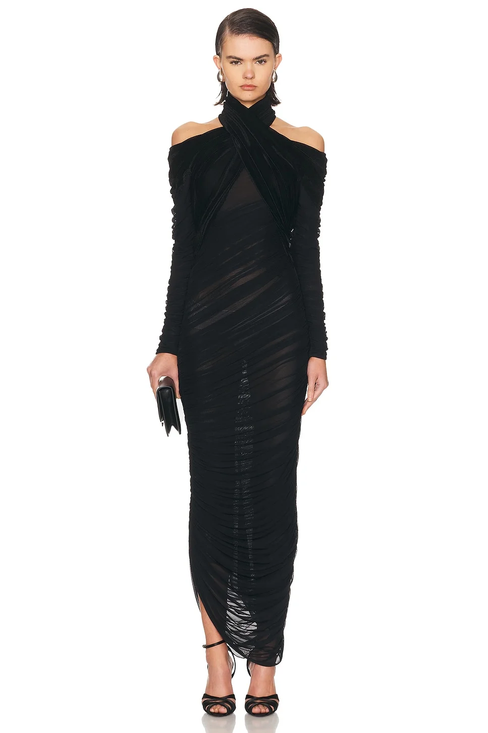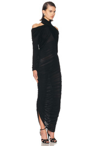 Details - Self: 94% recycled polyamide, 6% elastane - Lining: 57% polyester, 43% polyamide - Dry clean only - Fully lined with mesh fabric - Hidden side and back zip closure - Cut-out design at shoulders - Ruched sides - Heavyweight mesh fabric - Made in Tunisia - Our Style No. MUGL-WD185 - Manufacturer Style No. 25F3RO17817001