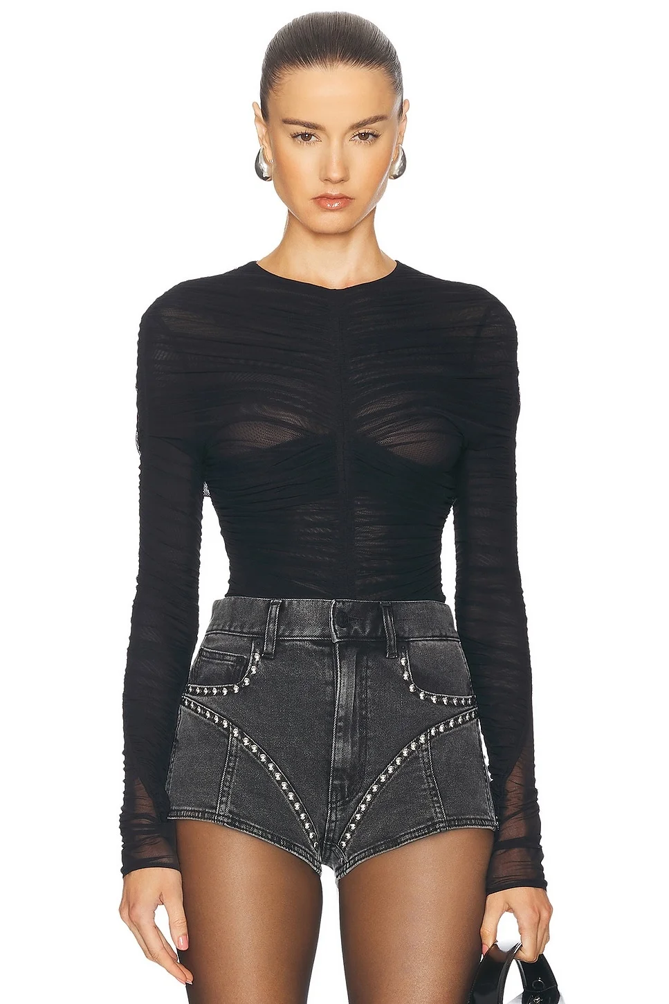 Details - 94% polyamide, 6% elastane - Made in Tunisia - Machine wash - Hidden back zipper closure - Gusset button snap closure - Mesh fabric with rushing throughout - Our Style No. MUGL-WS120 - Manufacturer Style No. 24F1BO0262595