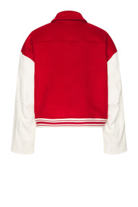 Details - Self: 50% wool, 50% polyester - Lining: 95% polyester, 5% elastane - Sleeves: 100% leather - Trim: 100% cotton - Made in China - Dry clean only - Hidden front zipper closure - Slant side pockets - Ribbed trim - Embroidered logo - Midweight melton fabric with contrast leather sleeves - Our Style No. NAHF-MO2 - Manufacturer Style No. W83-J47F20-610