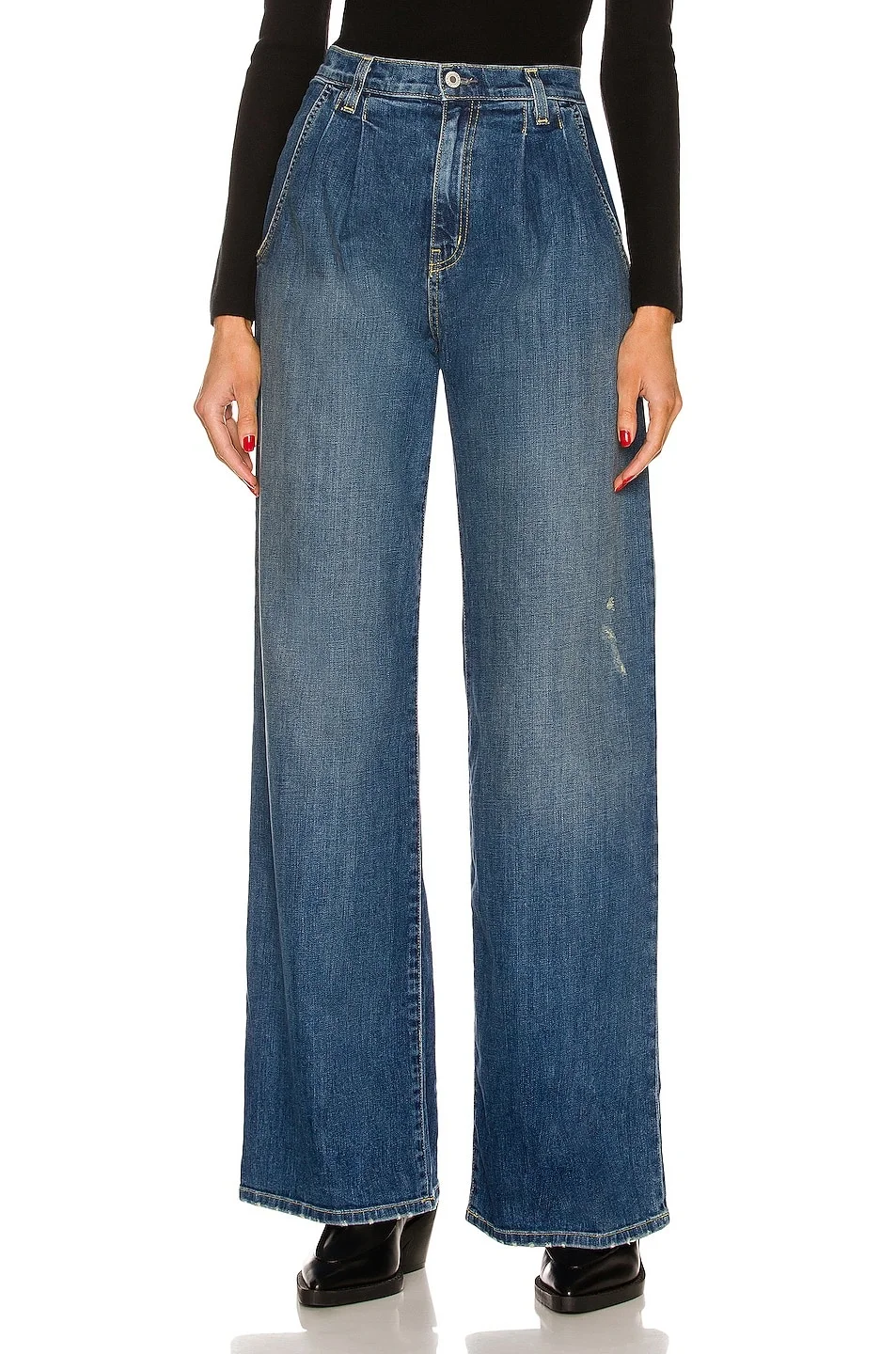Details - 98% cotton, 2% polyurethane - Made in USA - Machine wash - Zip fly with button closure - 4-pocket design - Lightly pleated front - Intentionally distressed detail - Our Style No. NILF-WJ34 - Manufacturer Style No. 11595-W45