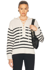 Details - 100% cashmere - Made in China - Dry clean only - Front partial tie-up closure - Hoodie design - Midweight soft knit fabric - Our Style No. NILF-WK313 - Manufacturer Style No. 81334-Y001
