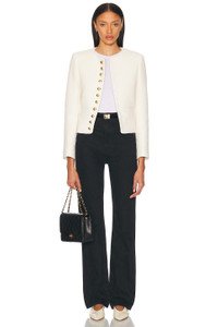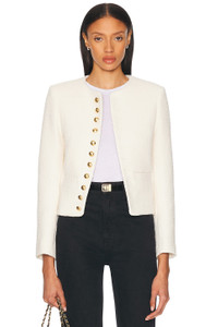 Details - Self: 57% cotton, 33% polyamide, 8% polyester, 2% other fibers - Lining 1: 100% viscose - Lining 2: 100% cotton - Dry clean only - Front gold-tone button closure - Light padding at shoulders - Front seam pockets - Buttoned cuffs - Tweed fabric - Made in Portugal - Our Style No. NILF-WO149 - Manufacturer Style No. 12697-W975