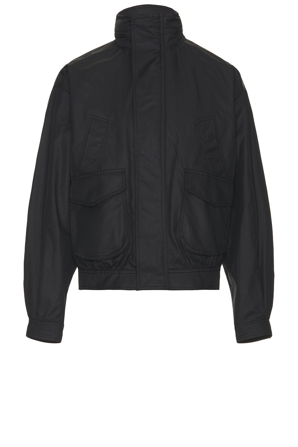 Details - Self: 80% cotton, 20% polyamide - Lining: 100% cotton - Dry clean only - Hidden front zip closure with snap button overlay - 4-pocket styling - Snap button cuffs - Midweight twill fabric with retractable hoodie - Made in Portugal - Our Style No. NILF-MO5 - Manufacturer Style No. 22049-W790