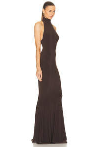 Stretch-jersey turtleneck gown Chocolate