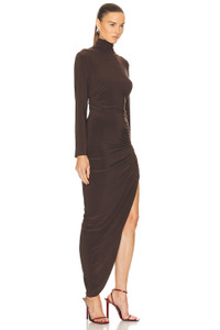 Long Sleeve Turtleneck Side Drape Gown