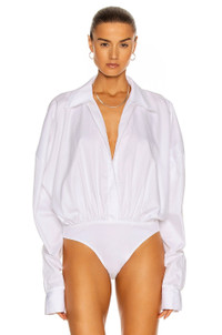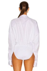 Details - 100% cotton - Made in China - Machine wash - Velcro front closure - Exaggerated sleeves - Oversized silhouette - Stretch bottoms and fit - Shirred fabric detail on back - Our Style No. NOMF-WS78 - Manufacturer Style No. ST521BCS049002