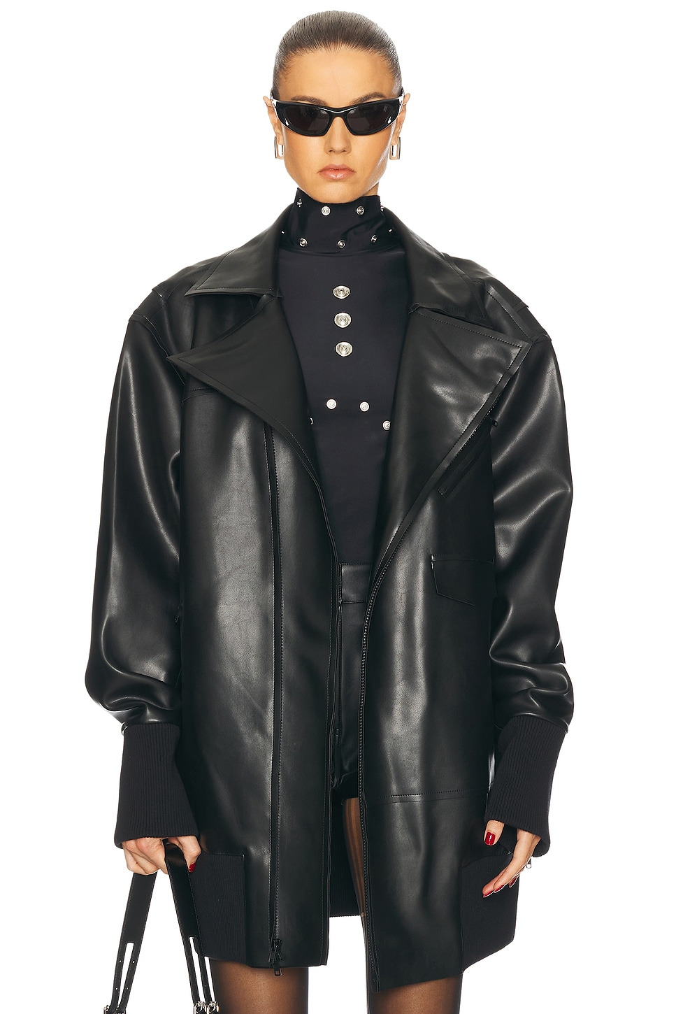 Details - Self 1: 100% polyurethane - Self 2: 90% polyester, 10% spandex - Self 3: 95% polyester, 5% spandex - Made in China - Machine wash - Pull-on styling - Faux leather fabric with ribbed knit fabric at cuffs and hem - style runs large, size down - Our Style No. NOMF-WO70 - Manufacturer Style No. ST3244LVF44001