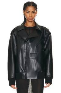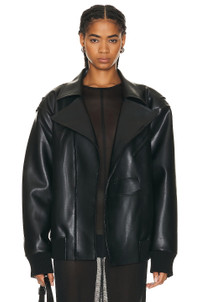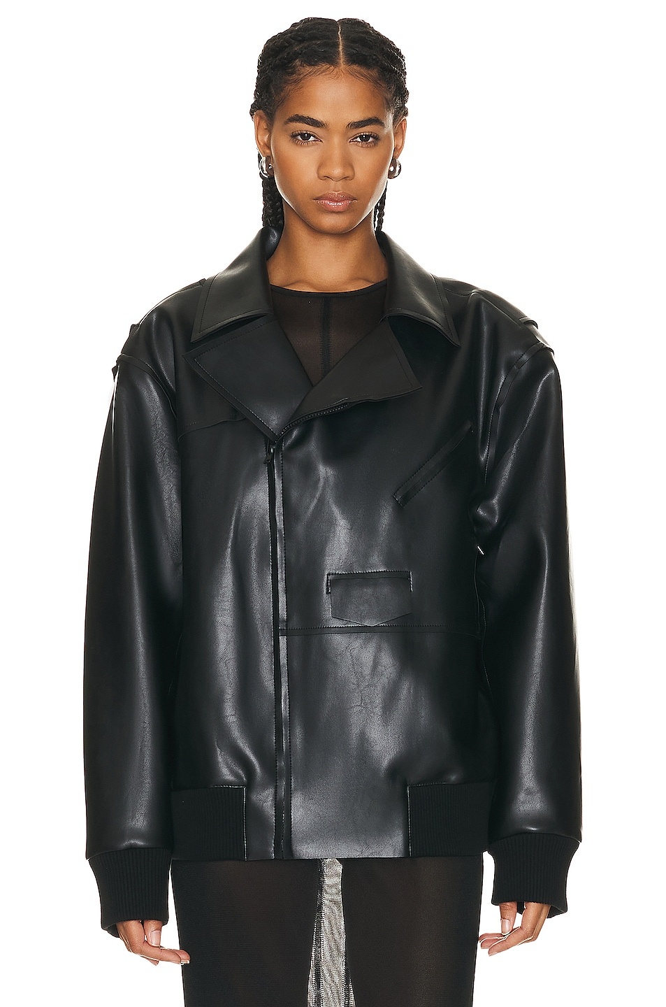 Details - Face: 100% polyurethane - Back: 90% polyester, 10% spandex - Combo: 95% polyester, 5% spandex - Made in China - Machine wash - Front zipper closure - Three front zipper pockets - One front flap pocket - Zipper closures at cuffs - Faux leather fabric with ribbed knit trim - Our Style No. NOMF-WO51 - Manufacturer Style No. ST2234LV054001