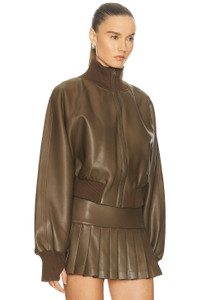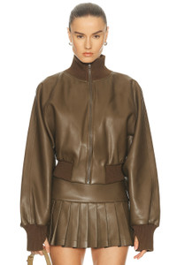 Details - Self 1: 100% polyurethane - Self 2: 95% polyester, 5% elastane - Machine wash - Hidden front zipper closure - Stand collar design - Faux leather with ribbed knit trim - Item not sold as a set - style runs large, size down - Made in China - Our Style No. NOMF-WO101 - Manufacturer Style No. ST3254LVR31867