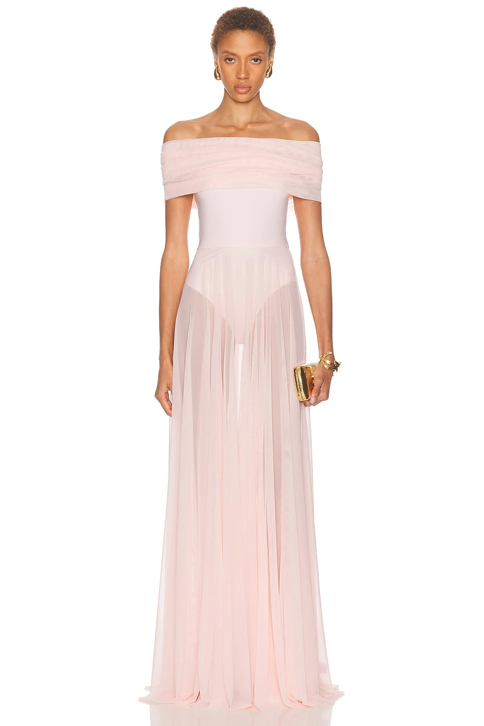 Details - Self: 95% polyester, 5% elastane - Trim: 82% nylon, 18% elastane - Made in China - Machine wash cold - Partially lined - Pull-on styling - Heavyweight mesh fabric - Off-shoulder styling - Our Style No. NOMF-WD724 - Manufacturer Style No. ST1263PMT53838