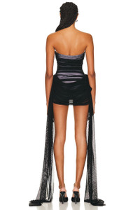 Details - 95% polyester, 5% spandex - Made in China - Dry clean only - Fully lined - Pull-on styling - Non-slip silicone lining at neckline - Boned sides - Mesh fabric overlay with draped fabric detail - Our Style No. NOMF-WD478 - Manufacturer Style No. ST4233MSC66801
