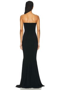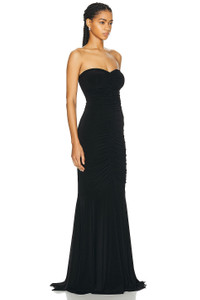 Strapless Shirred Front Fishtail Gown