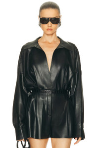faux-leather blouse