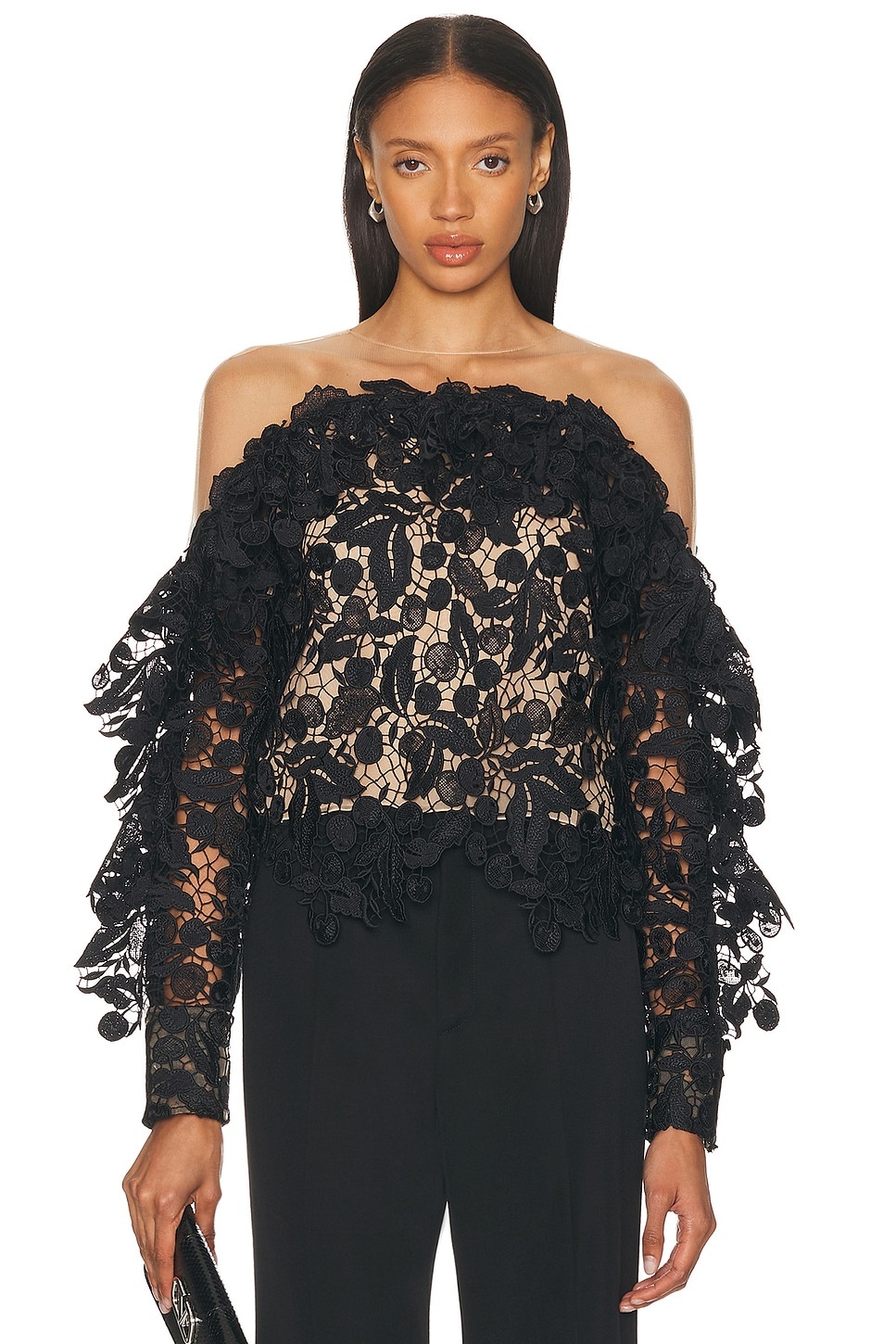 Off-The-Shoulder Guipure Top black