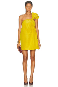Asymmetric Silk Faille Mini Dress yellow