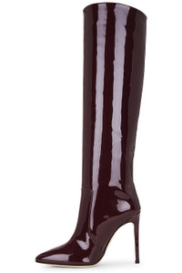Details - Patent leather upper with leather sole - Pull-on styling - Cushioned leather footbed and lining - Pointed toe - Stiletto heel - Approx 105mm/ 4.1 inch heel - Approx 406mm/ 16 inch shaft - Opening measures approx 44 cm in circumference - Made in Italy - Our Style No. PSTF-WZ302 - Manufacturer Style No. PX501