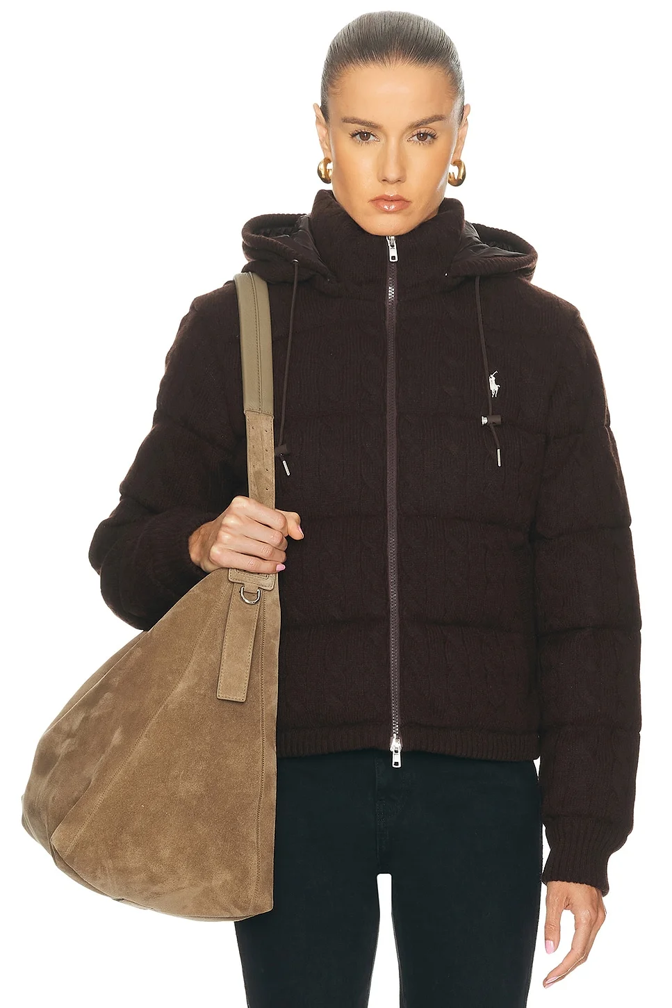 Details - Self: 90% wool, 10% cashmere - Lining: 100% nylon - Hand wash - Dual front zipper closure - Detachable drawstring hood - Puffed cable knit fabric with side seam pockets and snap button closure - Made in China - Our Style No. PLAU-WO35 - Manufacturer Style No. 211A92614004