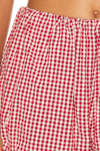 Aurelia gingham cotton-seersucker shorts Red