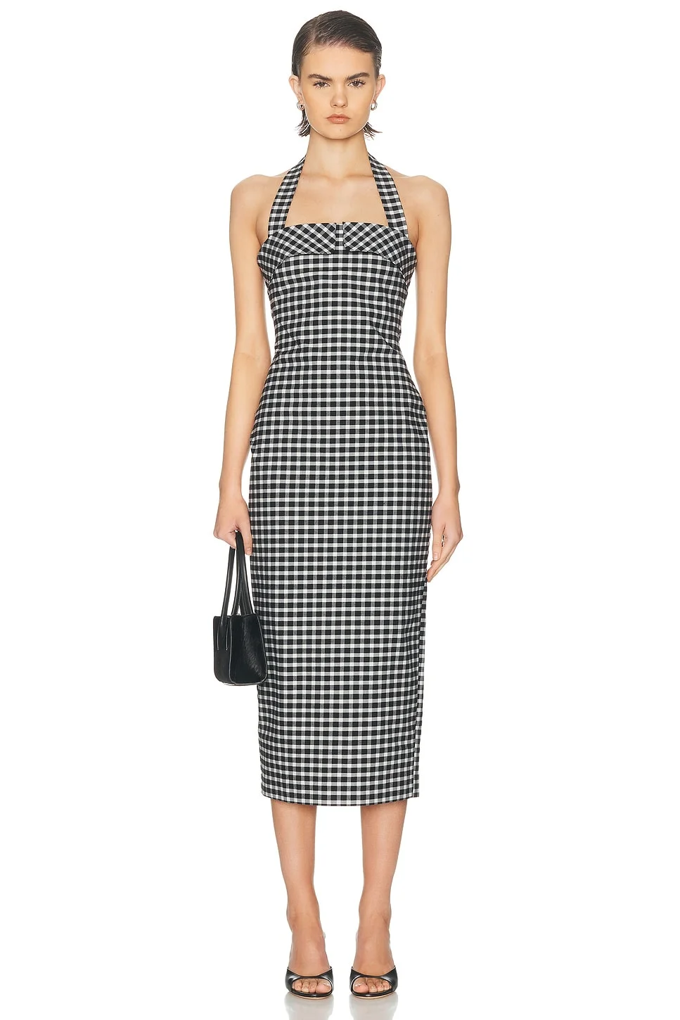 Chiara Checked Cotton-blend Halterneck Midi Dress