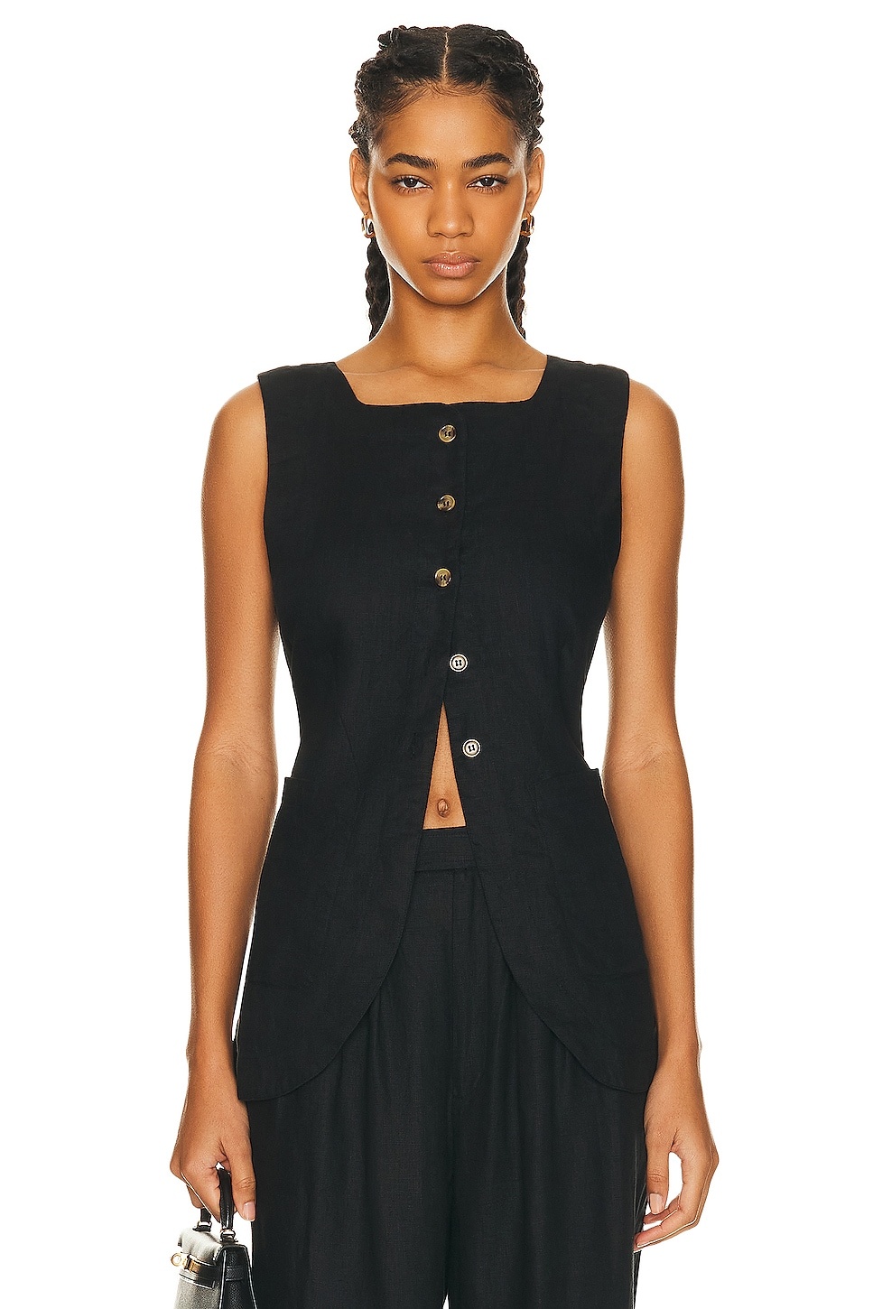 Details - Self: 100% linen - Lining: 100% cotton - Made in India - Hand wash - Front button closure - Side slip pockets - Linen fabric with adjustable back strap - Our Style No. PSSF-WS3 - Manufacturer Style No. PS587-BLK
