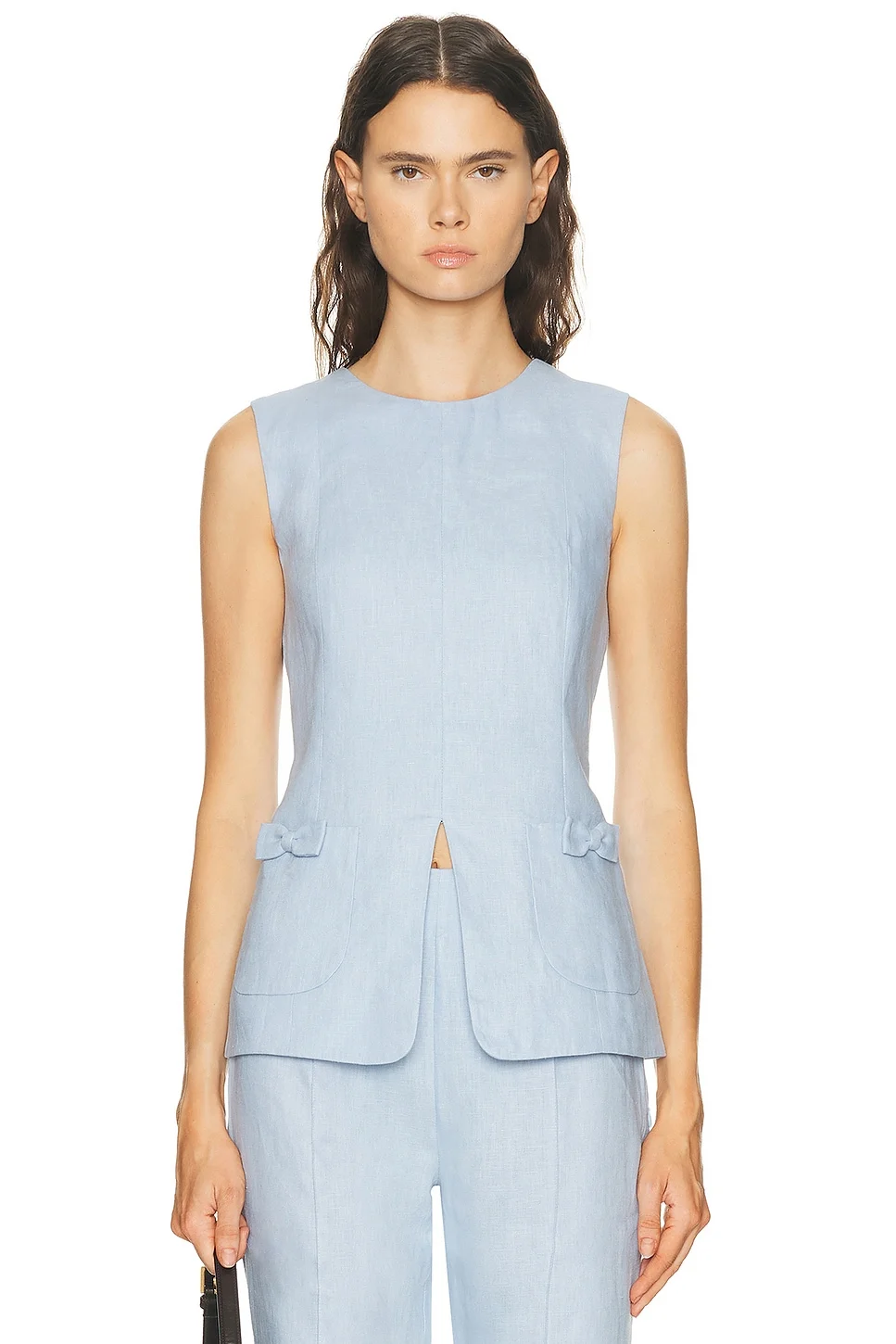 Details - Self: 100% linen - Lining: 100% cotton - Dry clean only - Hidden back zip closure - Front slip pockets with bow detailing - Midweight linen fabric - Item not sold as a set - Made in China - Our Style No. PSSF-WS46 - Manufacturer Style No. PS1799-BLU