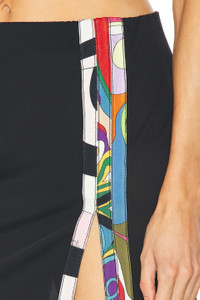 Details - Self: 95% viscose, 5% elastane - Contrast Fabric: 57% viscose, 43% polyester - Made in Italy - Dry clean only - Unlined - Elastic waistband - Lightweight jersey fabric with side slit - Item not sold as set - Garment is made with a semi-sheer fabric, undergarments can show through - Our Style No. EMIF-WQ45 - Manufacturer Style No. 4UJV06-4U631