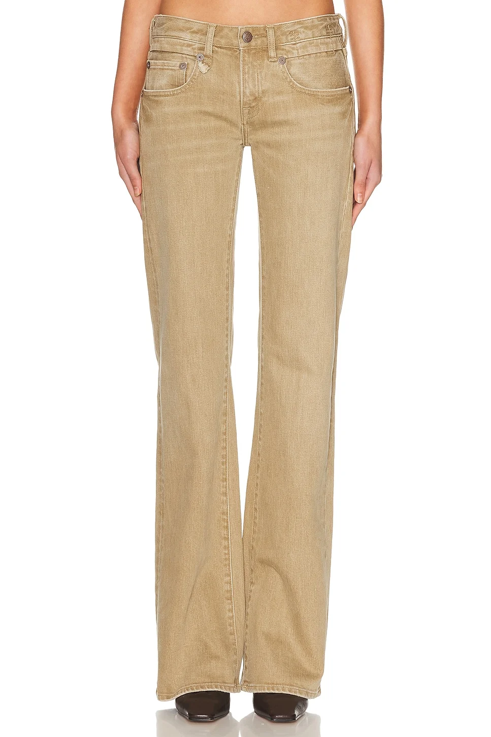 Details - Self: 100% cotton - Trim: 100% cow leather - Made in China - Machine wash cold - Zip fly with button closure - Midweight denim fabric - 5-pocket styling - Our Style No. R13-WJ351 - Manufacturer Style No. R13WD090-D393A