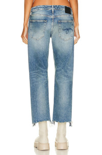 Details - Self: 98% cotton, 2% elastan - Patch: 100% cow leather - Made in Italy - Machine wash - Zip fly with button closure - Whiskering and fading detail along front - 5-pocket design - Frayed hem - Our Style No. R13-WJ189 - Manufacturer Style No. R13W0091-143A