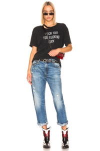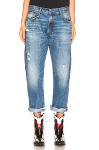 Details - 100% cotton - Made in Italy - Machine wash - Zip and button front closures - Whiskering and fading detail on front - Lightly distressed fabric detail - 5-pocket design - Destroyed hem - Our Style No. R13-WJ180 - Manufacturer Style No. R13W5083 969