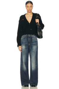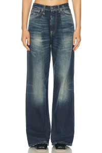 Details - 92% cotton, 8% elastane - Made in Italy - Machine wash - Zip fly with button closure - 5-pocket design - Front pressed pleat design - Fading and whiskering at front and back - Our Style No. R13-WJ308 - Manufacturer Style No. R13W3147-D144A