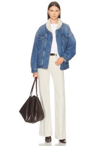 Details - Self 1: 100% cotton - Self 2: 100% leather - Machine wash - Zip fly with button closure - 5-pocket styling - Logo patch at back waist - Twill fabric - Made in China - Our Style No. R13-WJ337 - Manufacturer Style No. R13W7020-D338A