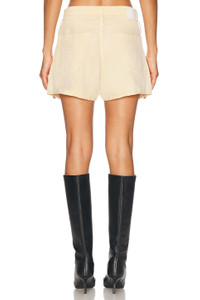 Details - Self 1: 100% linen - Self 2: 100% cow leather - Made in China - Machine wash - Zip fly with button closure - 5-pocket design - Logo patch as back waist - Linen fabric - Our Style No. R13-WF79 - Manufacturer Style No. R13WD116-D312A