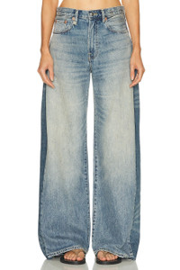 Details - Self 1: 100% cotton - Self 2: 100% cow leather - Machine wash - Zip fly with button closure - 5-pocket styling - Logo patch at back waist - Low-rise fit - Rigid denim fabric - Made in China - Our Style No. R13-WJ335 - Manufacturer Style No. R13WD192-D347A